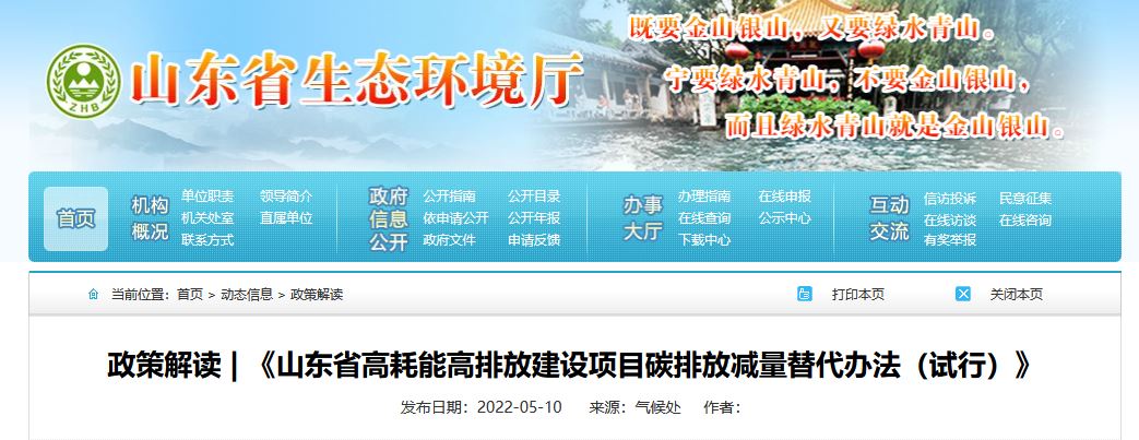 有关文件:山东省生态环境厅 山东省发展和改革委员会关于印发山东省高耗能高排放建设项目碳排放减量替代办法(试行)的通知