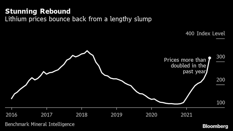 自2018年峰值以来的长期低迷,意味着该行业的投资放缓,而疫情加剧了供应紧张。在需求方面,绿色能源转型加快了电动汽车的普及,据彭博社(BloombergNEF)估计,到2020年,全球锂消费量将增长5倍。