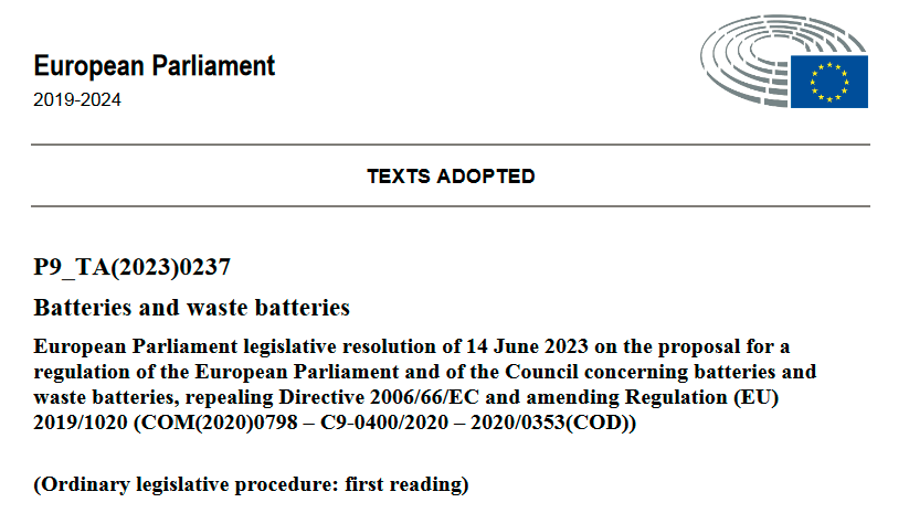 周三(6月14日),欧洲议会批准了针对在欧盟销售的所有类型电池的设计、生产和废物管理的新规定。