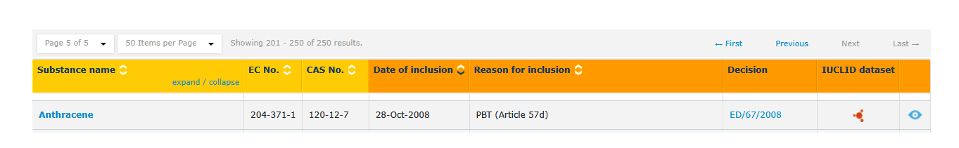中文名称:蒽,英文名称:Anthracene,CAS号:120-12-7,EC号:204-371-1,2008年10月28日,被列为SVHC第一批清单。